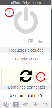 - Un clic sur l’icône UBlock Origin situé en haut à droite.