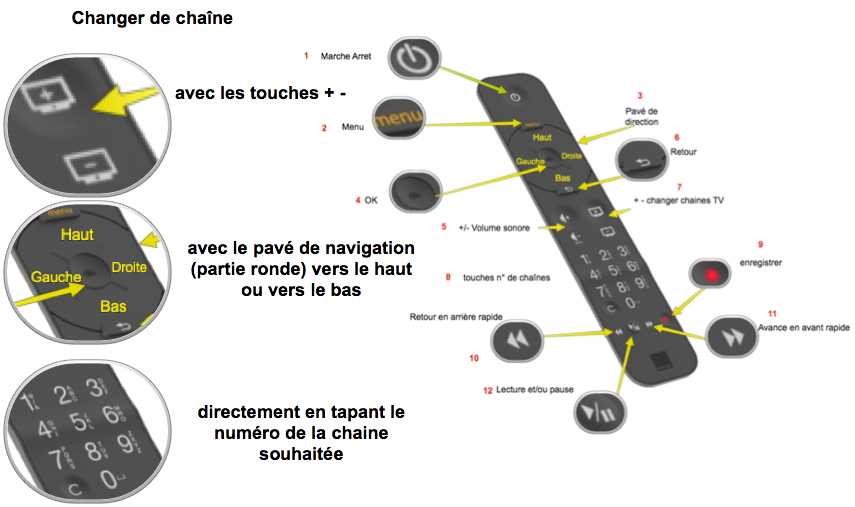 La 1ere et dernière méthode permettent un accès direct à la chaine (+/- avant après et numéro = accés direct)