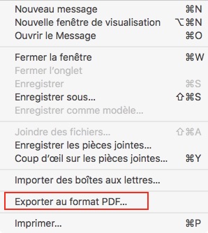 Cas 1 : l’option est proposée dans le menu fichier en «enregistrement sous» ou en «export»