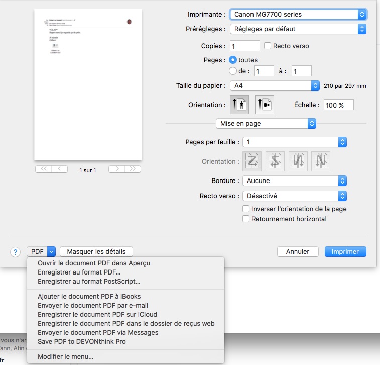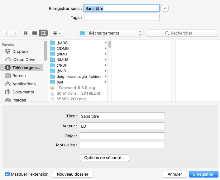 A noter : par défaut une compression légère est pratiquée sur le PDF. Pour la modifier, il faut reprendre le document dans Aperçu ou utiliser des services en lignes (comme ceux décris ici http://bit.ly/2MHguNg) ou des logiciels tiers.