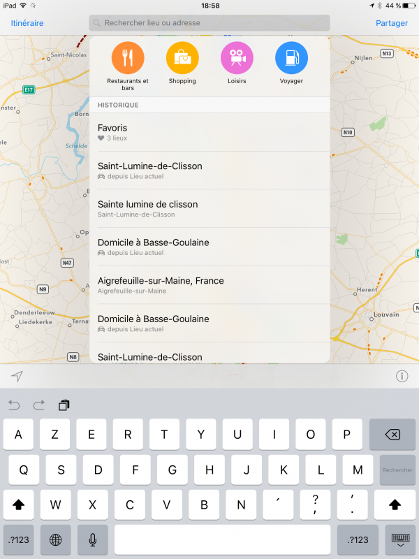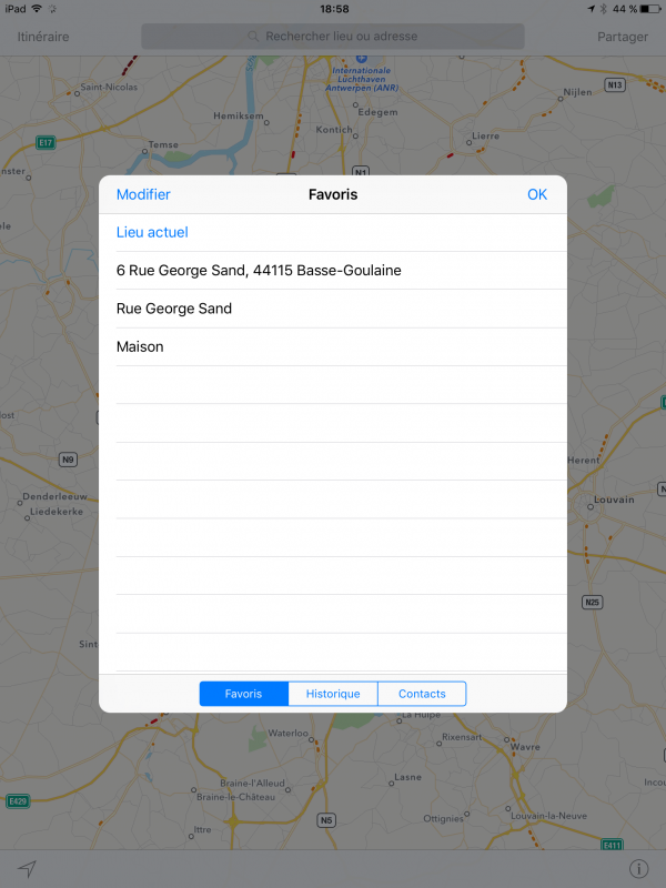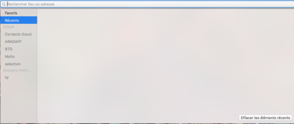 L‘application plans permet de localiser et de faire un itinéraire d’un point à un autre. Par praticité, les différentes recherches sont mémorisées. On peut alors y faire référence ou les ajouter en favoris pour plus facilement y faire appel par la suite.