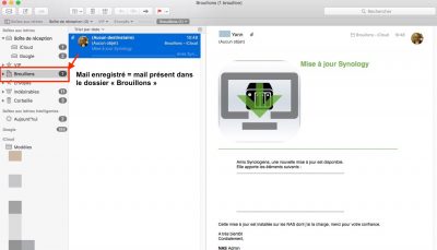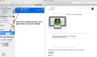 On finalise en déplaçant le mail du dossier brouillon vers un dossier adapté de son stockage de mail (ici Modèles)
