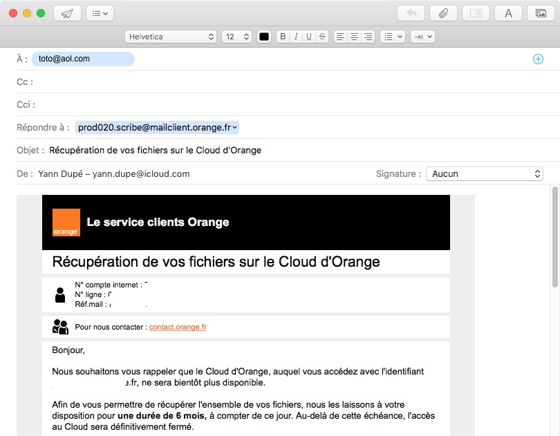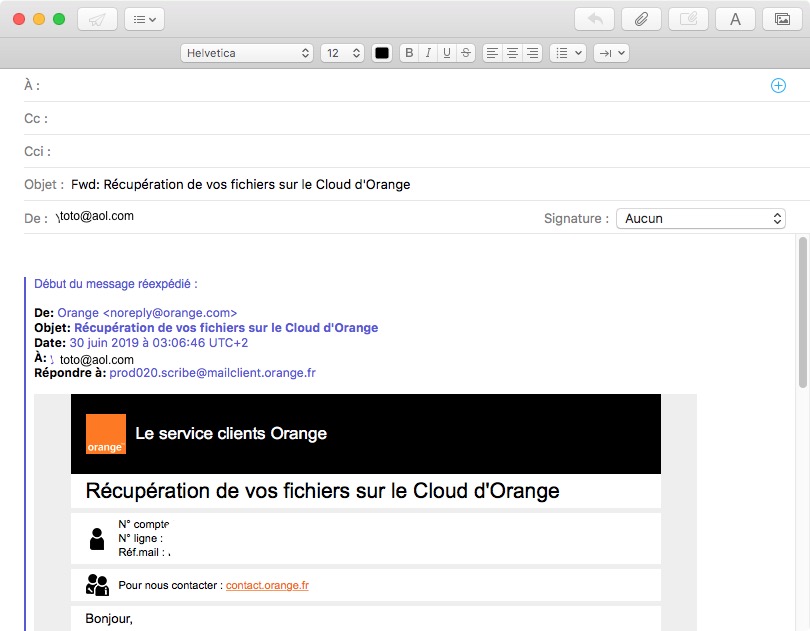- le mail initial est présenté comme une réponse de mail
