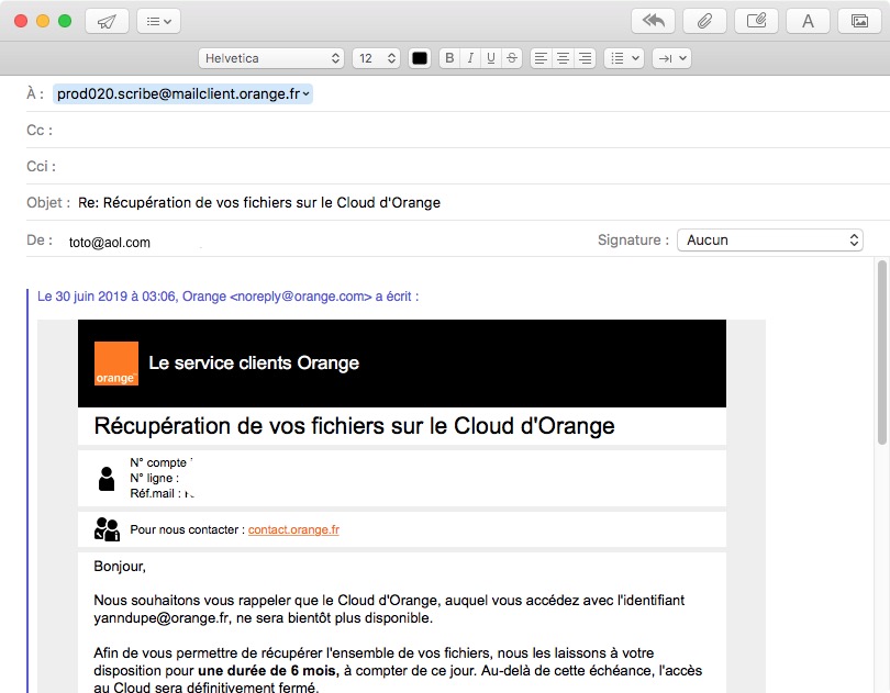 - le mail initial est présenté comme une réponse de mail
