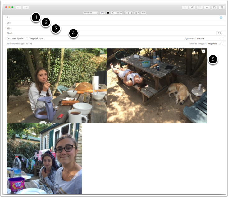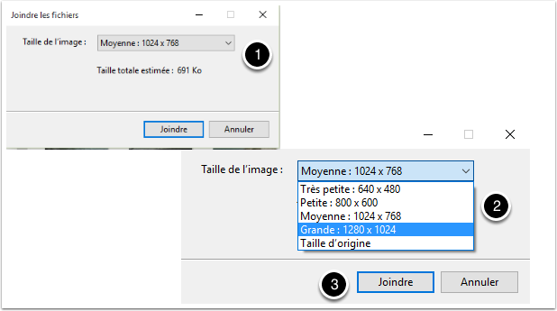 Il faut éviter d’envoyer les images en « tailles originales » car cela pèse très (trop) lourd pour les boîtes e-mails.