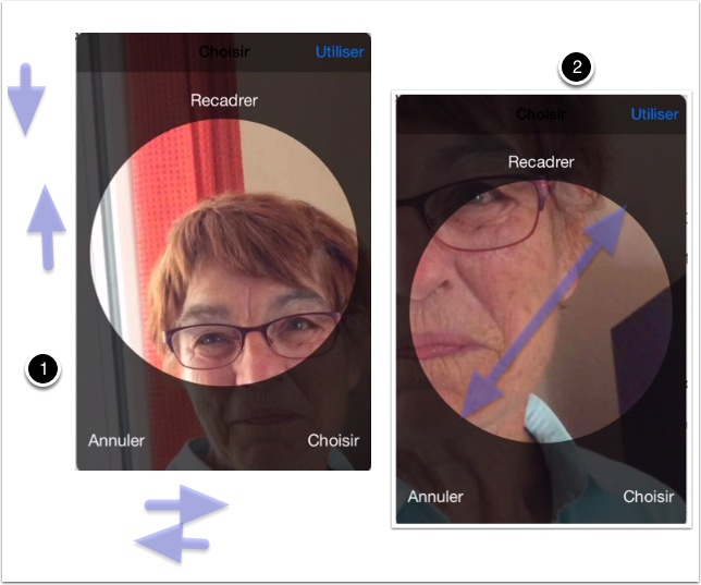 - modifier la photo : pour la recadrer (agrandir ou réduire, mettre plus à gauche ou à droite.. bref recadrer la photo