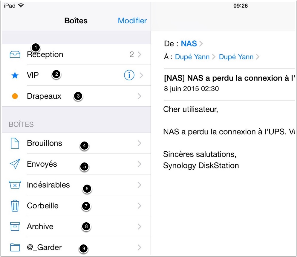 A noter : l’espace de stockage est conséquent, mais pas infini. Il est à la fois sur l’iPad et sur le ‘Cloud’ le nuage Internet. Voilà pourquoi, il est conseillé de ne garder que les messages jugés importants à garder.