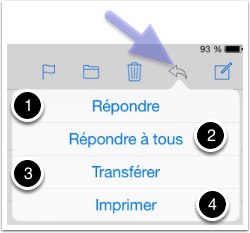 - la ‘flèche vers la gauche‘ permet de répondre, transferer ou d’imprimer un mail