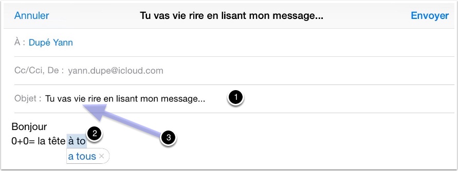 - Bien prendre le temps de relire sous peine d’avoir des messages un peu transformé… (cf l’objet dans cet exemple)