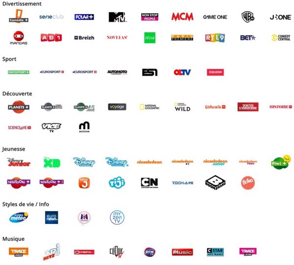Dès le lien établi, les chaînes autorisées selon son abonnement, sont affichées.