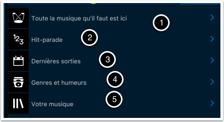 - Genres et Humeur : on peut choisir selon son humeur (mélancolique, sportive etc.. ou des thèmes musicaux)