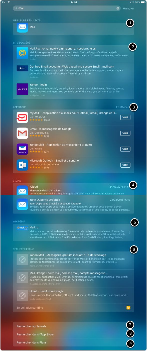 IOS le système d'exploitation de l'iPad et de l'iPhone dispose de son propre moteur de recherche.
