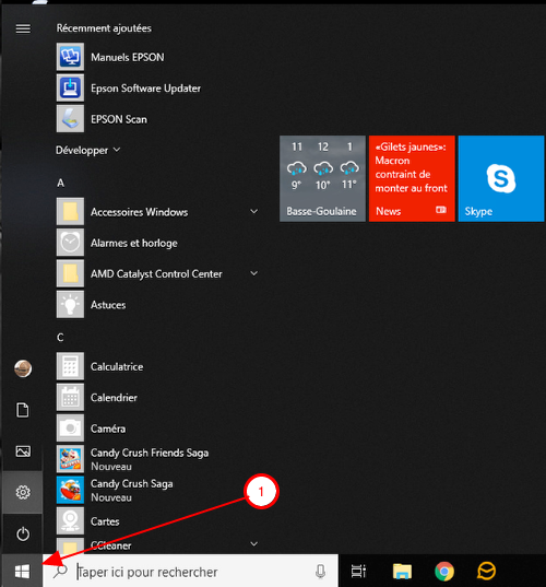 1. Menu Démarrer symbolisé en bas à gauche par l’icône Windows.