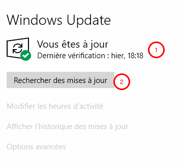 1. Si on est à jour, si l’ordinateur doit être redémarré et de quand date cette dernière recherche