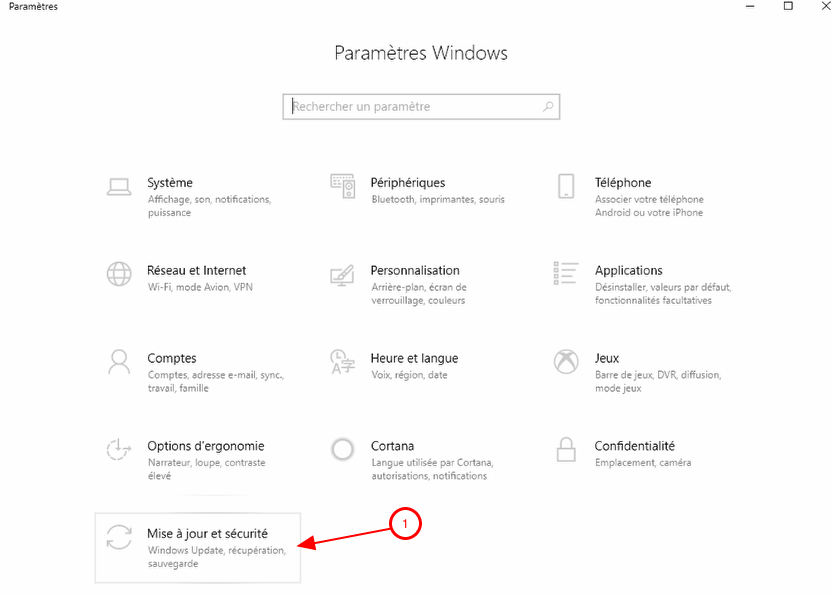 1. Là on choisit le dernier choix  : Mise à jour et sécurité