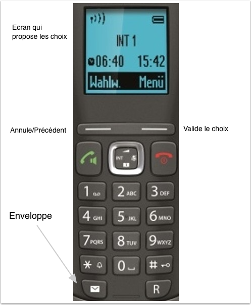 Le plus simple est de rester appuyé sur la touche concernée [1] qui compose l’accès à la messagerie externe.