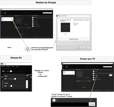 dans ce cas, on peut jouer sur le groupe mais aussi sur chaque enceinte.