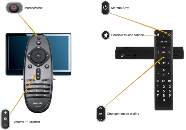 A noter : la touche silence sur le décodeur Canal peut couper/remettre le son