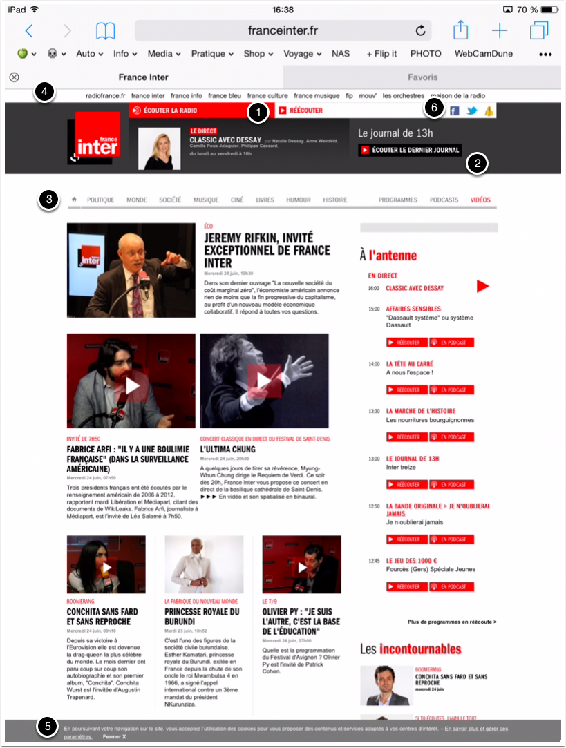 Décryptage de l’écran du site France Inter :