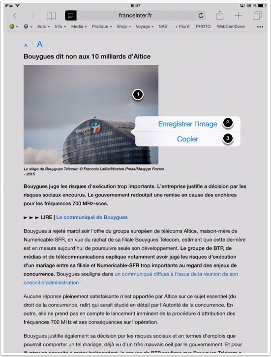 A noter : on peut le faire avec le texte, il faut le sélectionner, puis, un appui long sur la sélection amène ce même menu.