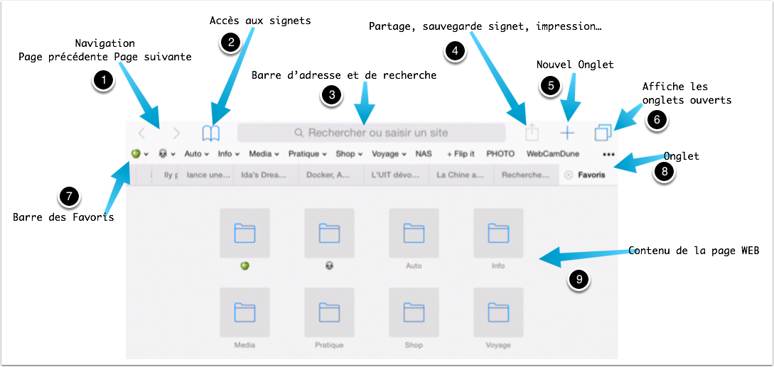 L’objectif de ce document est d’appréhender l’utilisation du navigateur, de voir comment les informations s’affichent et comment les consulter, comment effectuer une recherche, et comment gérer ma navigation (gestion des onglets) , comment partager une information par e-mail ou iMessage.