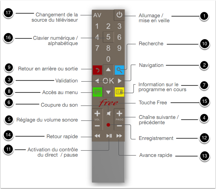 15. FREE : la touche qui permet de revenir au menu principal (accueuil)