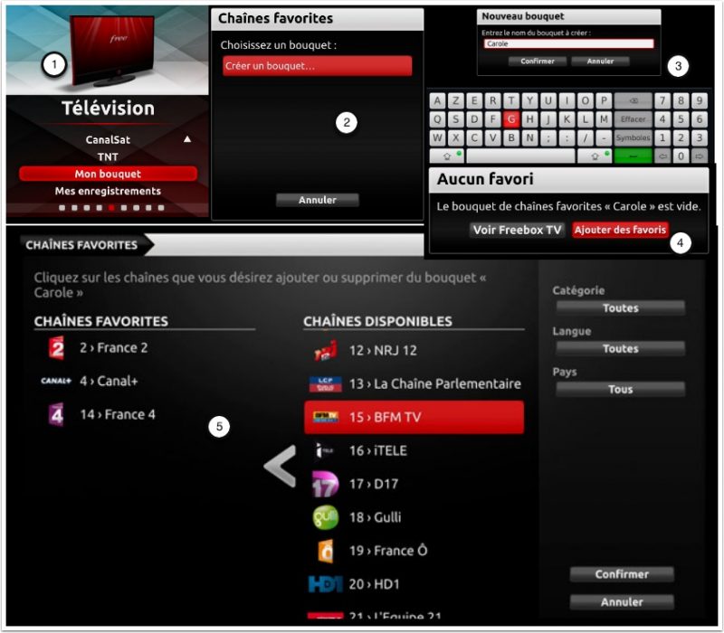 1. Menu FreeBox puis Télévision choisir Mon Bouquet