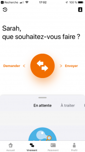 On choisir si on veut ENVOYER (faire un virement) ou DEMANDER (recevoir un virement/paiement)