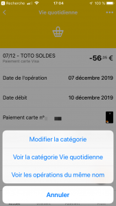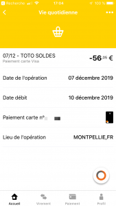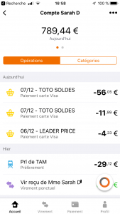 Si livret présent, un tap sur livret permet de basculer sur les opérations du Livret (et inversement lorsque le livret est en 1er, on rebascule sur le compte courant)
