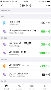 - envoyer/recevoir un virement