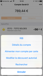 L’accès aux opérations se fait par un tap sur le solde.