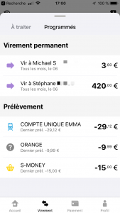 On peut envoyer de l’argent à des tiers identifiés (bénéficiaires dont on a au préalable enregistrer un RIB/IBAN) de manière ponctuelle ou permanente (mouvements programmés dans le temps).