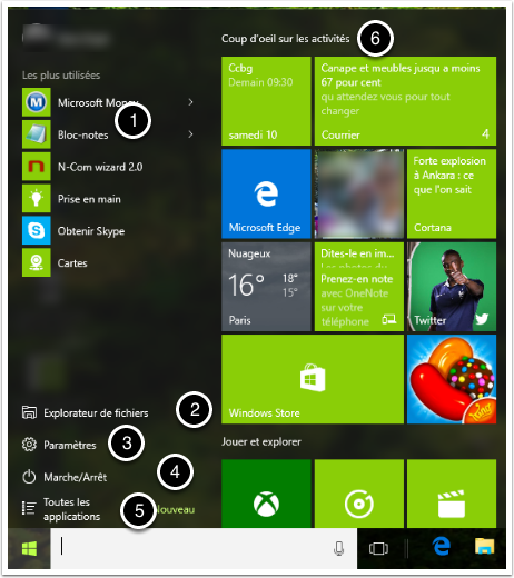 Comme avant on retrouve les icônes sur le bureau, les raccourcis épinglés (4) et