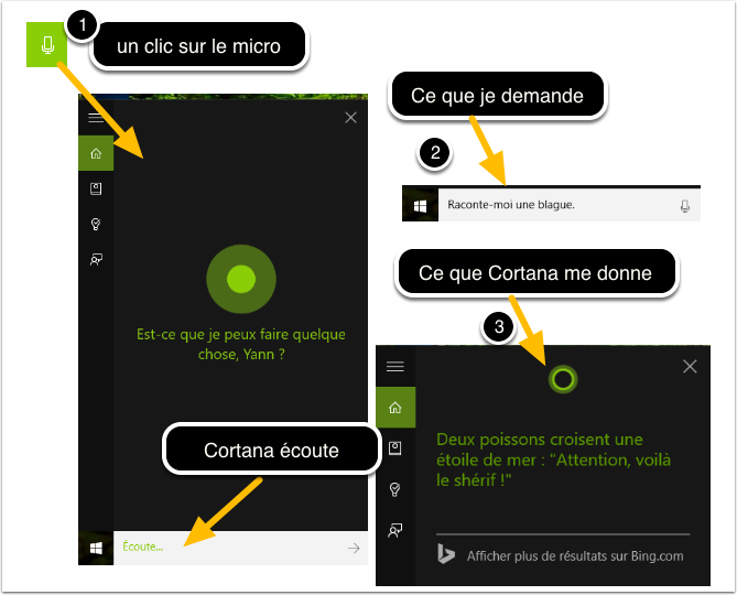 - Cortana écoute, au fur et à mesure qu’on parle la machine décrypte notre demande