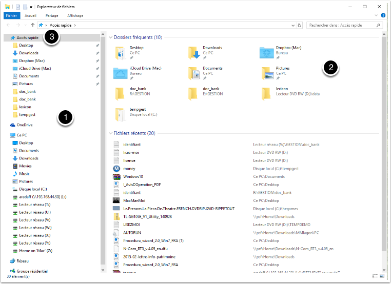 La nouveauté c’est l’accès rapide (3) qui permet comme son nom l’indique d’accéder aux dossiers les plus utilisés.